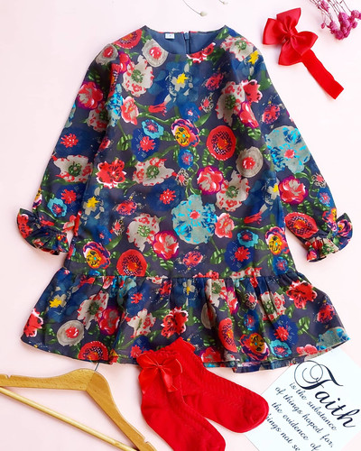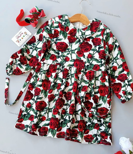 پیراهن دخترانه پنبه ای طرح هلو ( 20523)