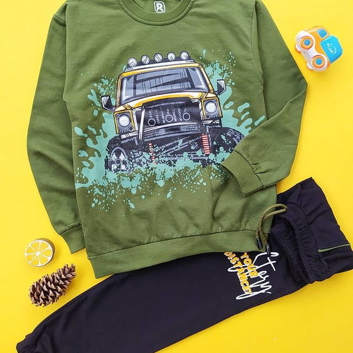 بلوز و شلوار داخل کرک طرح جیپ دو رنگ (317182)