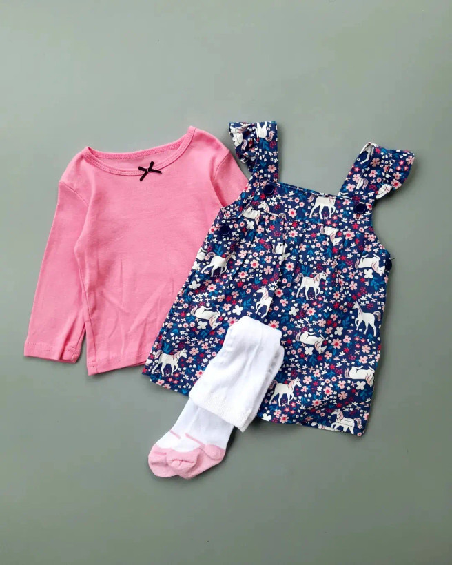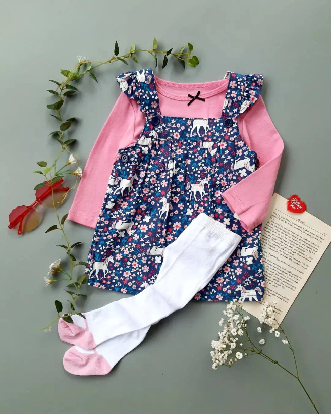 ست سه تکه بلوز و سارافون و جوراب شلواری برند