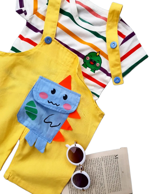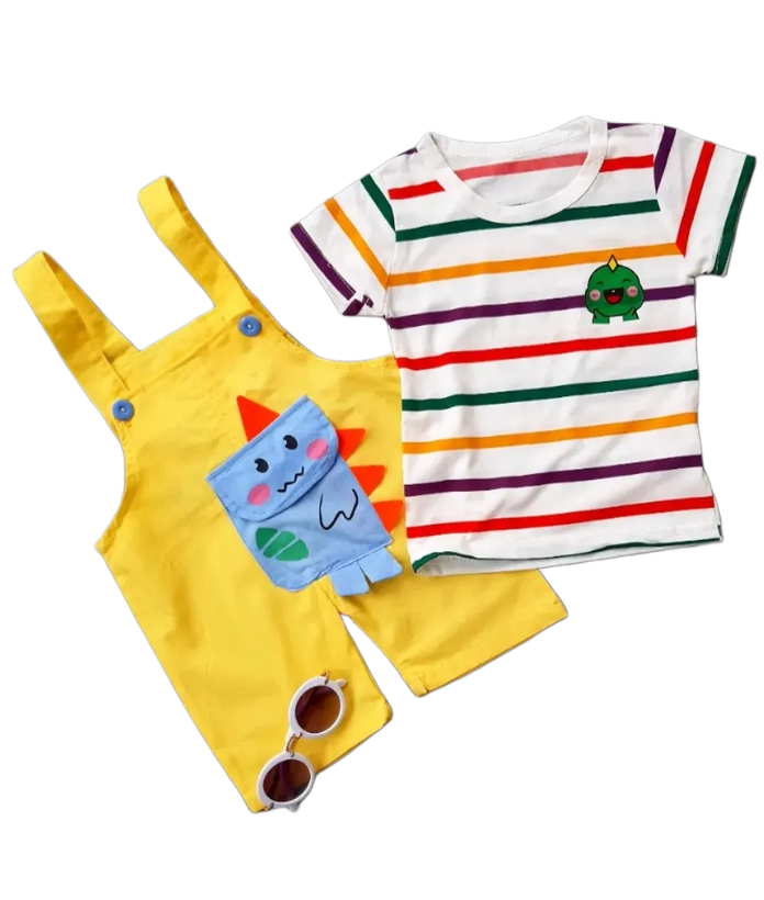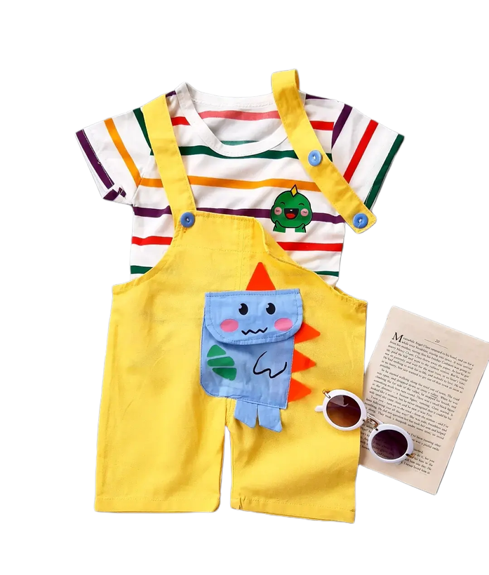 ست تیشرت و شلوارک پیشبندی دایناسور زرد (307028)