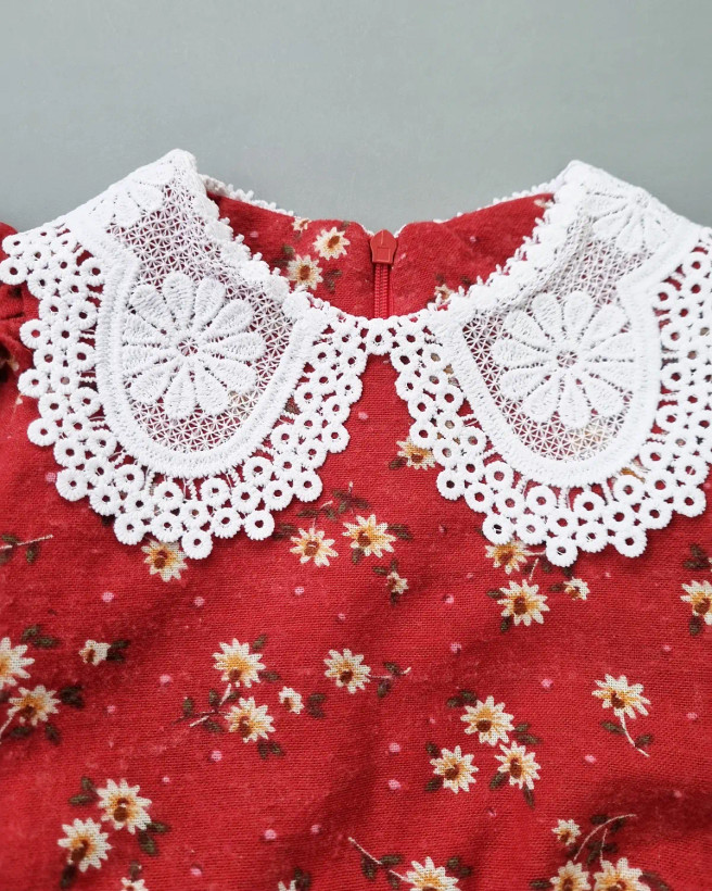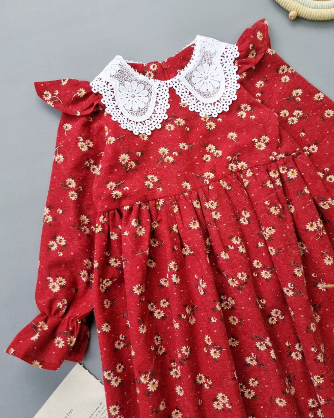 پیراهن قرمز گل ریز (234568)