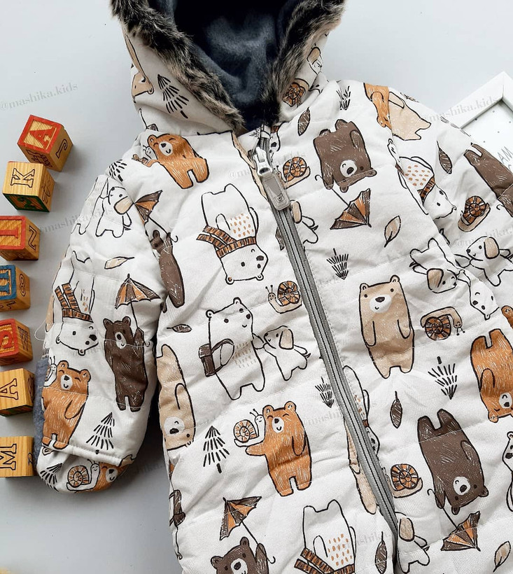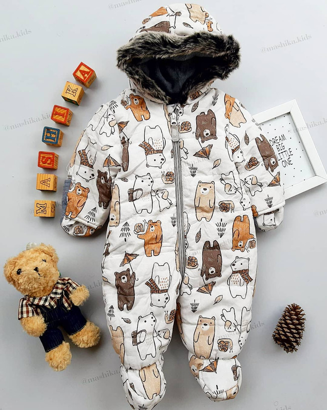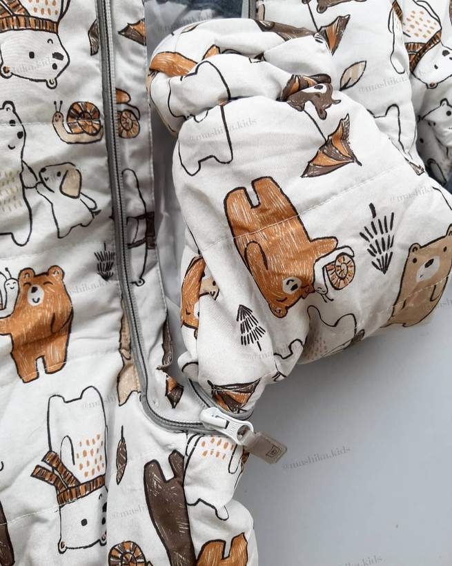 کاپشن سرهمی سفید طرح خرس (212028)