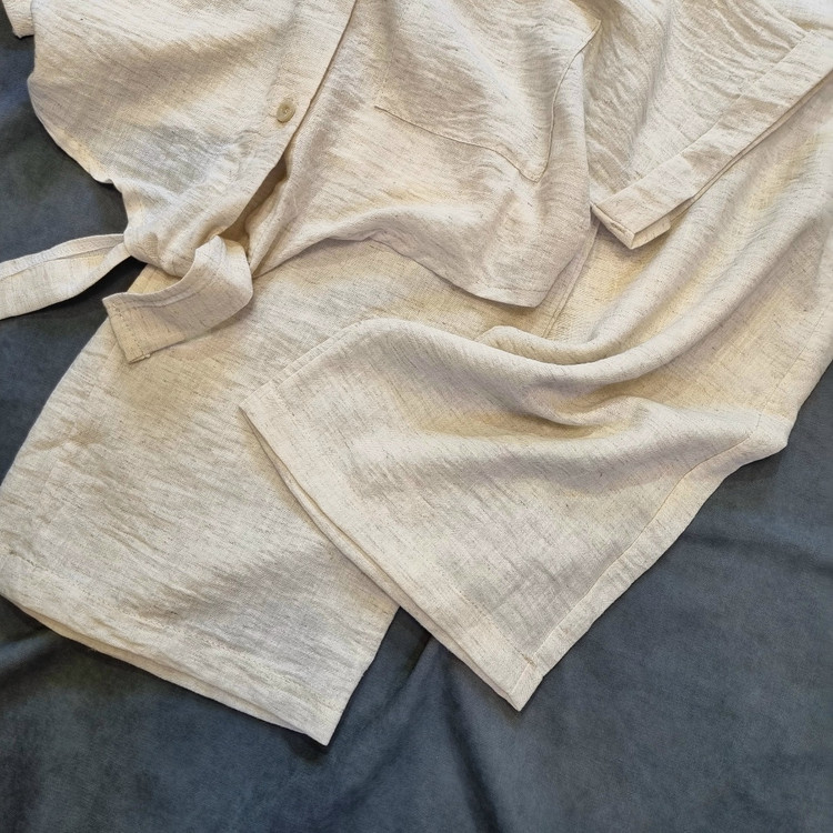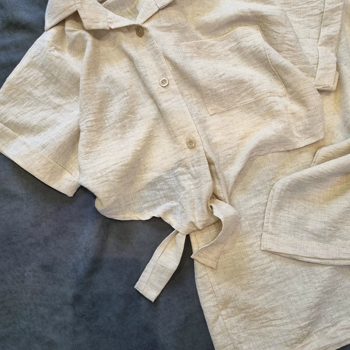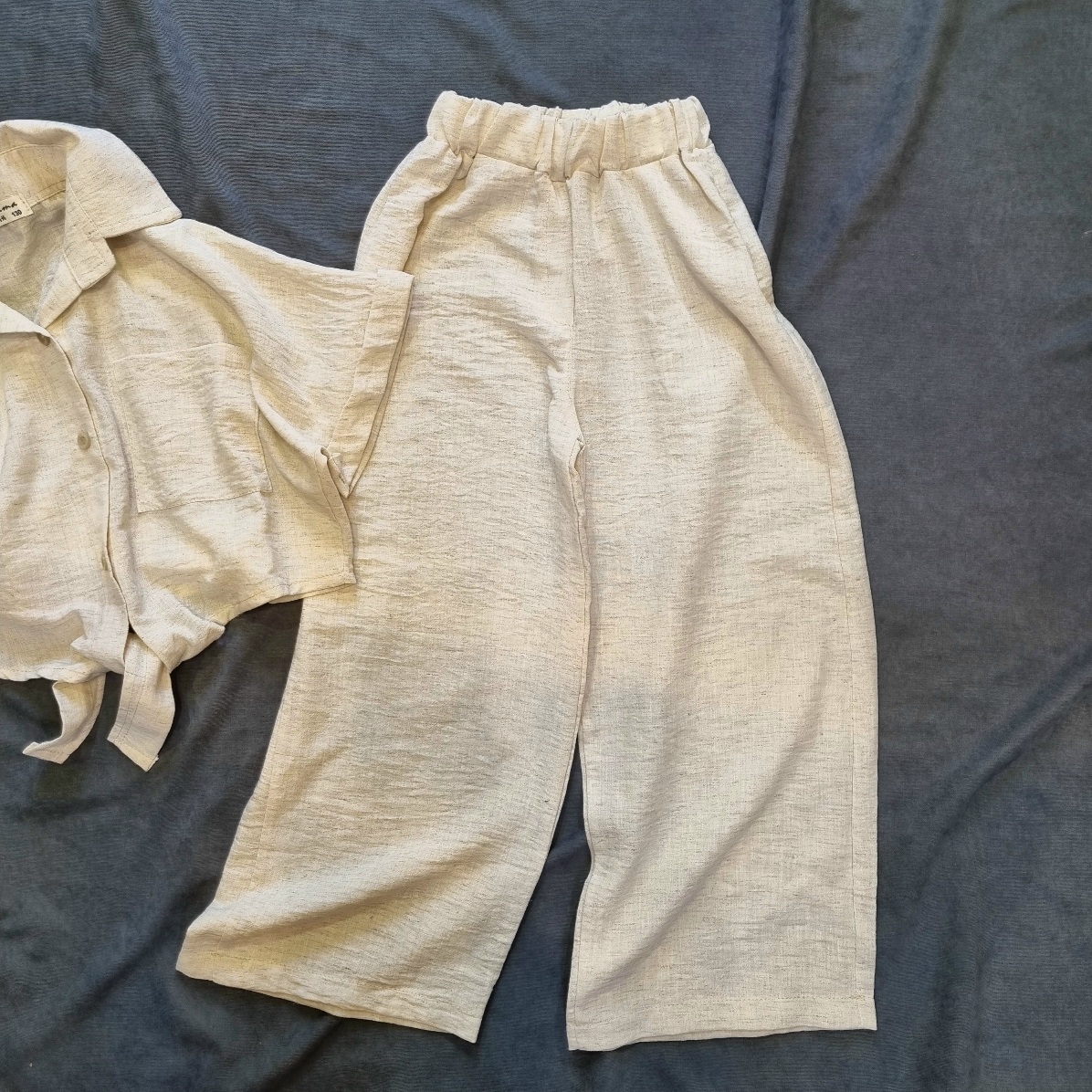 _ ست شومیزگرهای و شلوار نیم بگ لینن