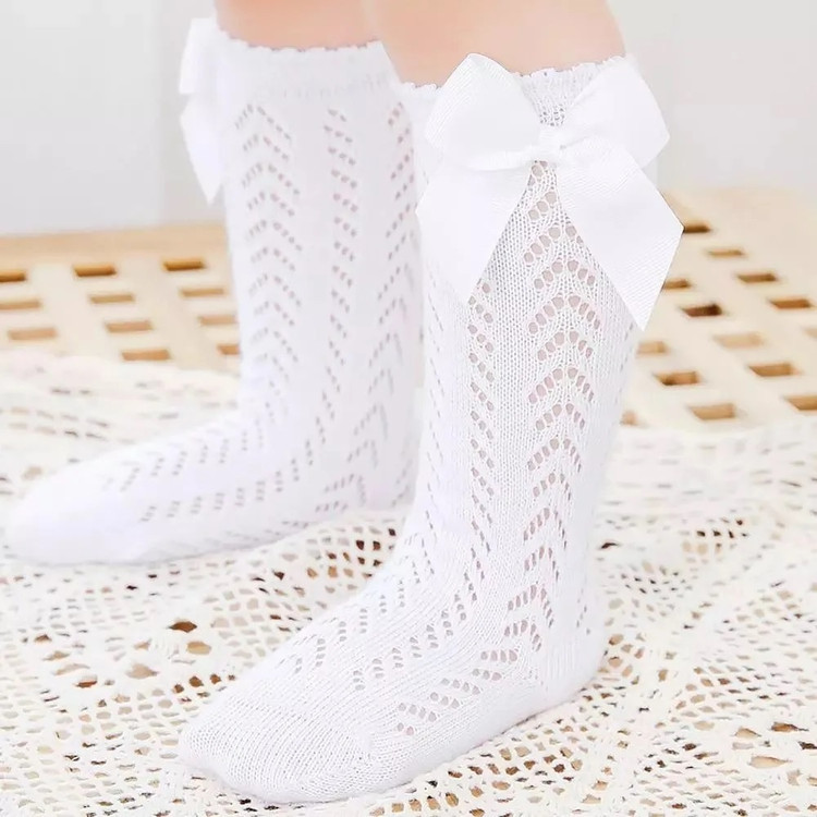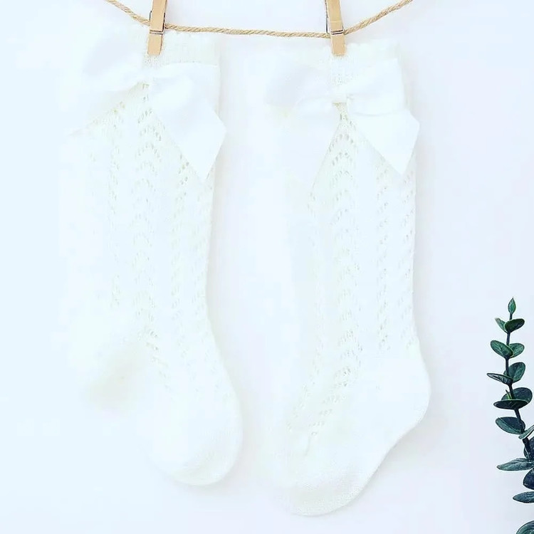 جوراب ساق بلند سفید پاپیوندار 🌺