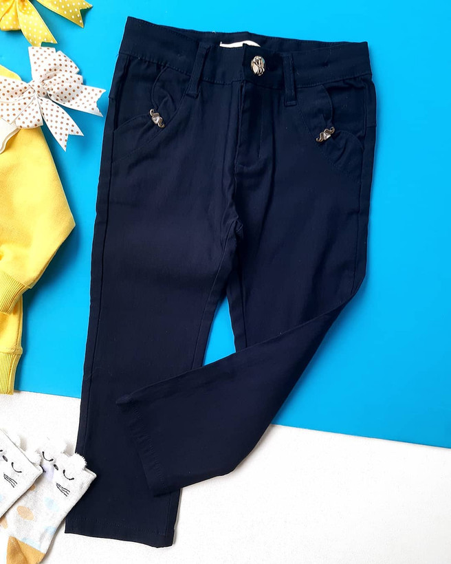 شلوار کتان کش سورمه ای دخترانه (203074)
