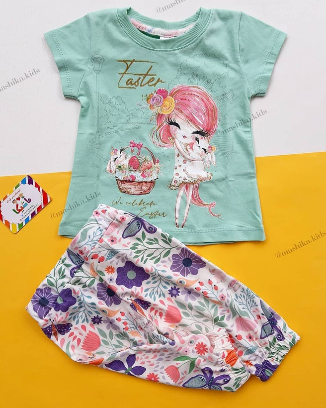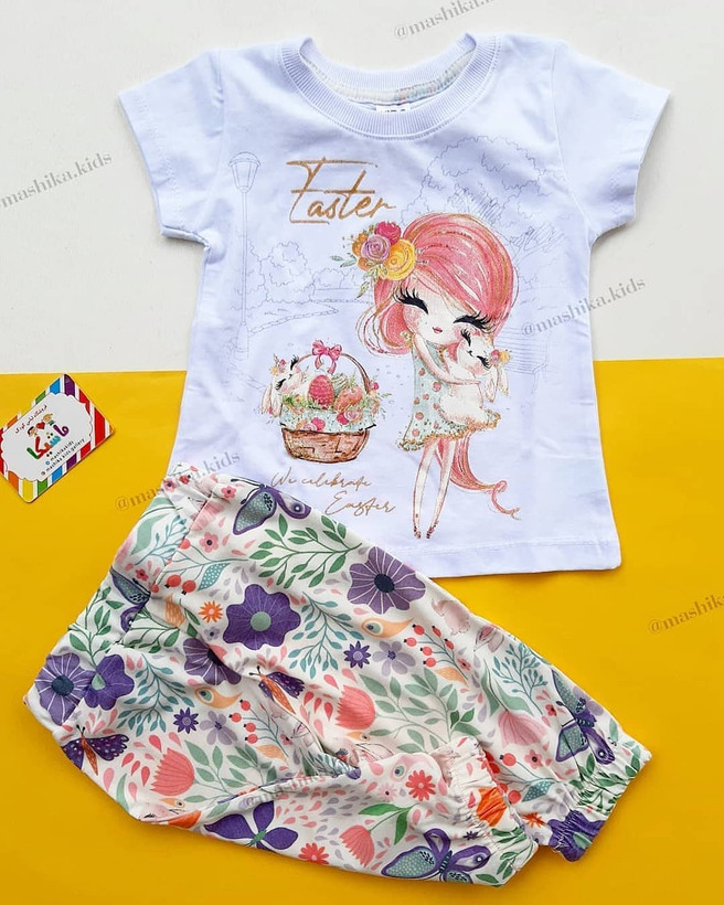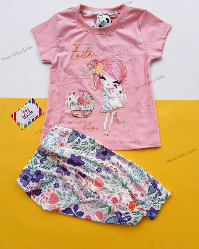 تیشرت و شلوارک طرح دختر و خرگوش (221115)