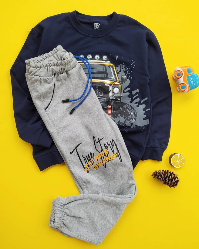 بلوز و شلوار داخل کرک طرح جیپ دو رنگ (317182)