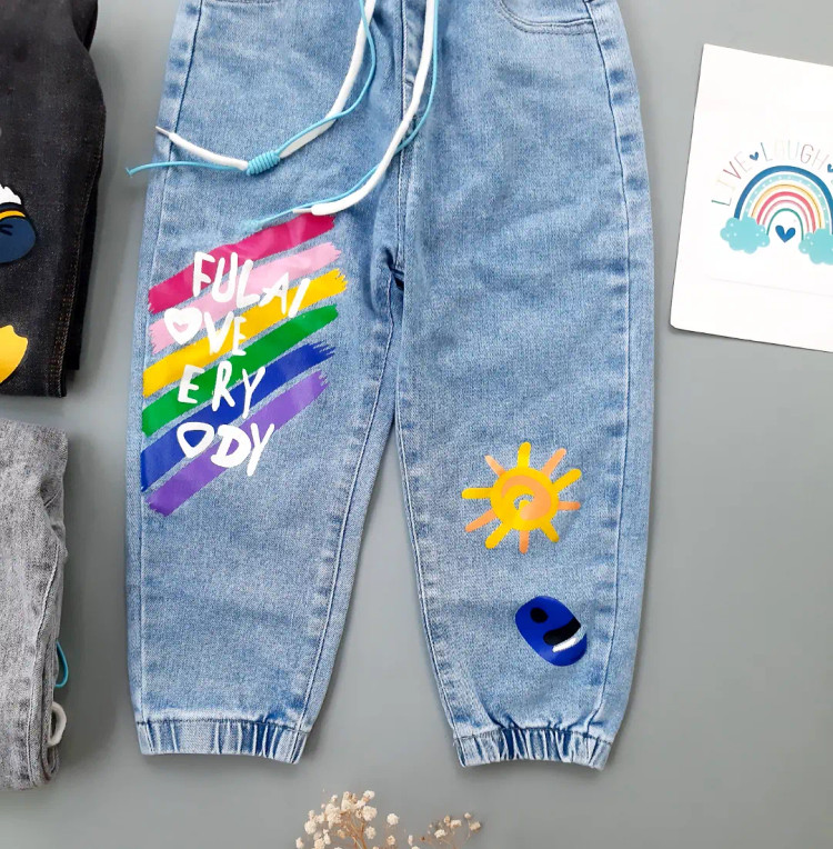 شلوار جین طرح رنگین کمان (401091)