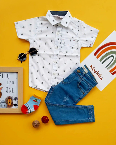 ناموجود پیراهن سفید آبی حروف (303247)