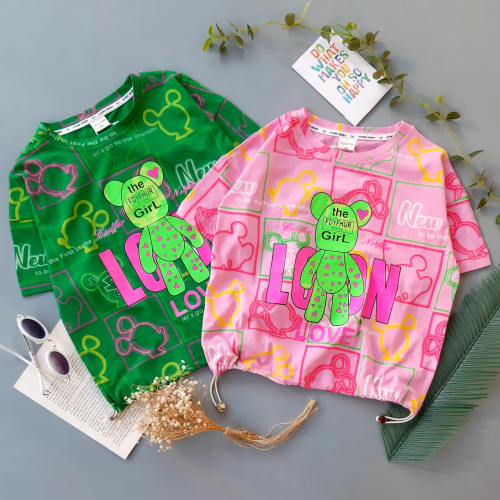 تیشرت چاپ پفکی سبزصورتی(904800)