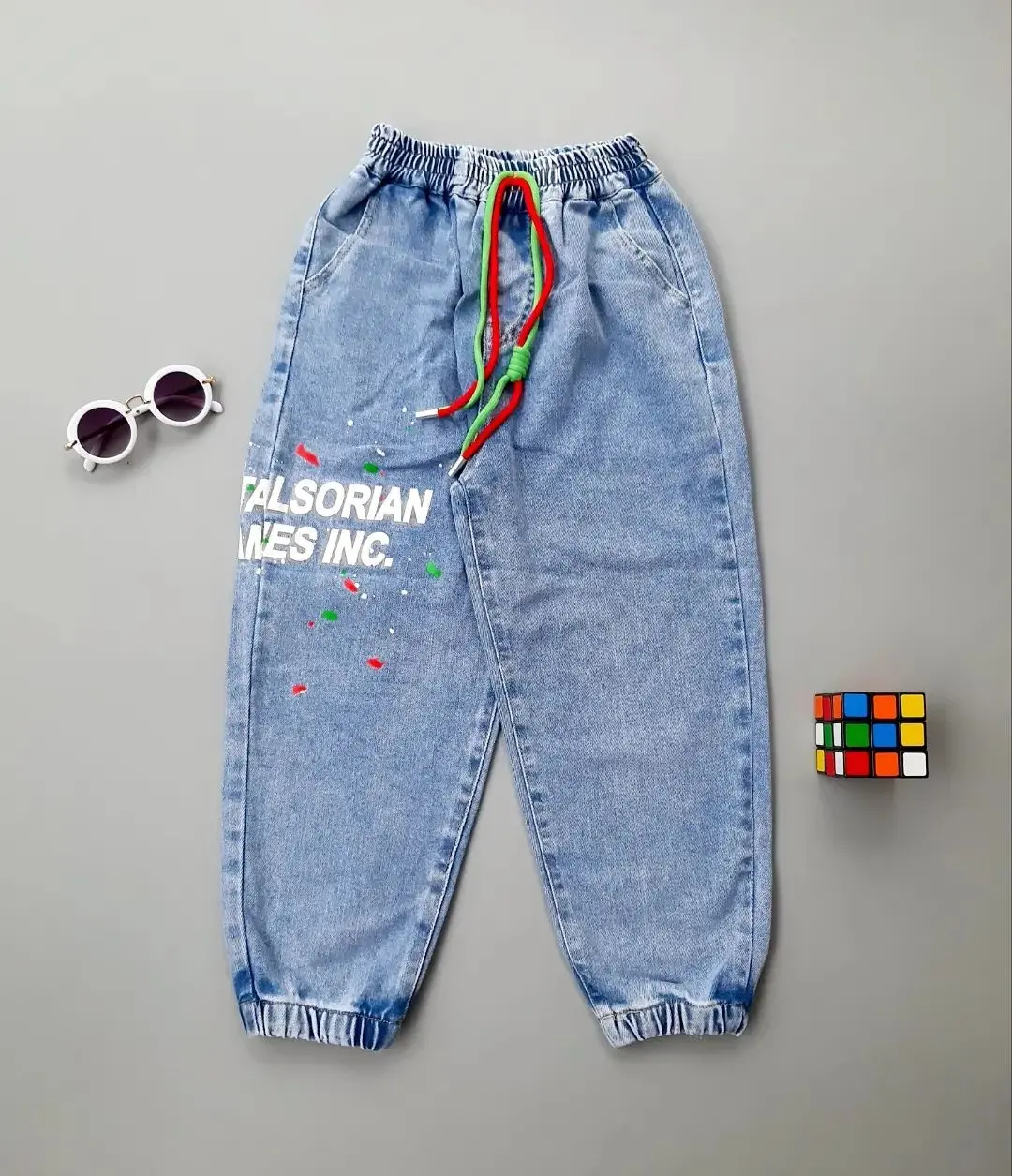 شلوار جین مام استایل حروف انگلیسی (401086)