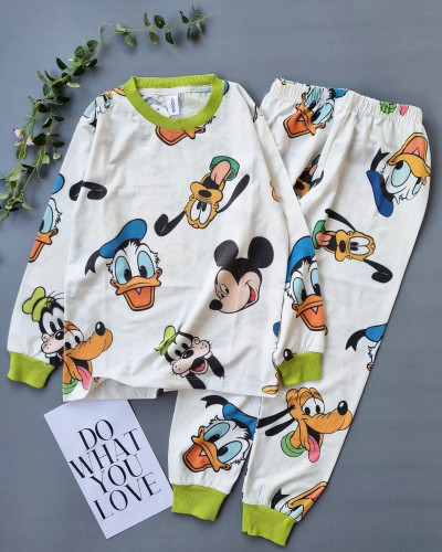 بلوز شلوار گوفی و اردک و میکی سبز (317244)