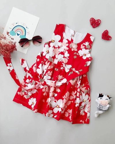 پیراهن دخترانه پنبه ای طرح هلو ( 20523)